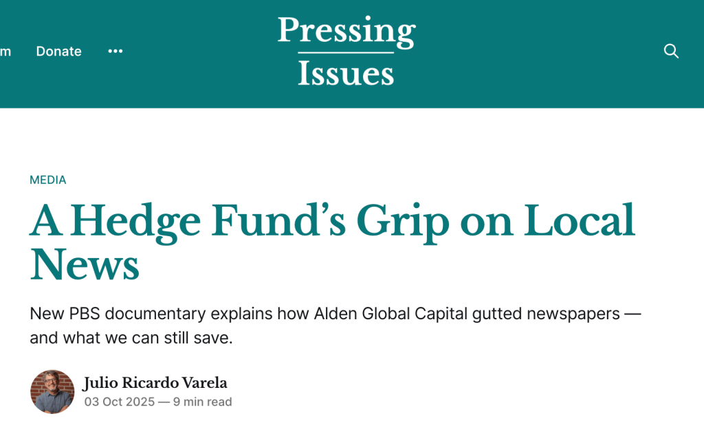 He also interviews director Rick Goldsmith about the news industry, the production of the documentary and his hopes for the future. “This is not an industry problem. This is a society problem. How do we make vibrant and well-supported this essential service that is the lifeblood of democracy?” says Goldsmith.